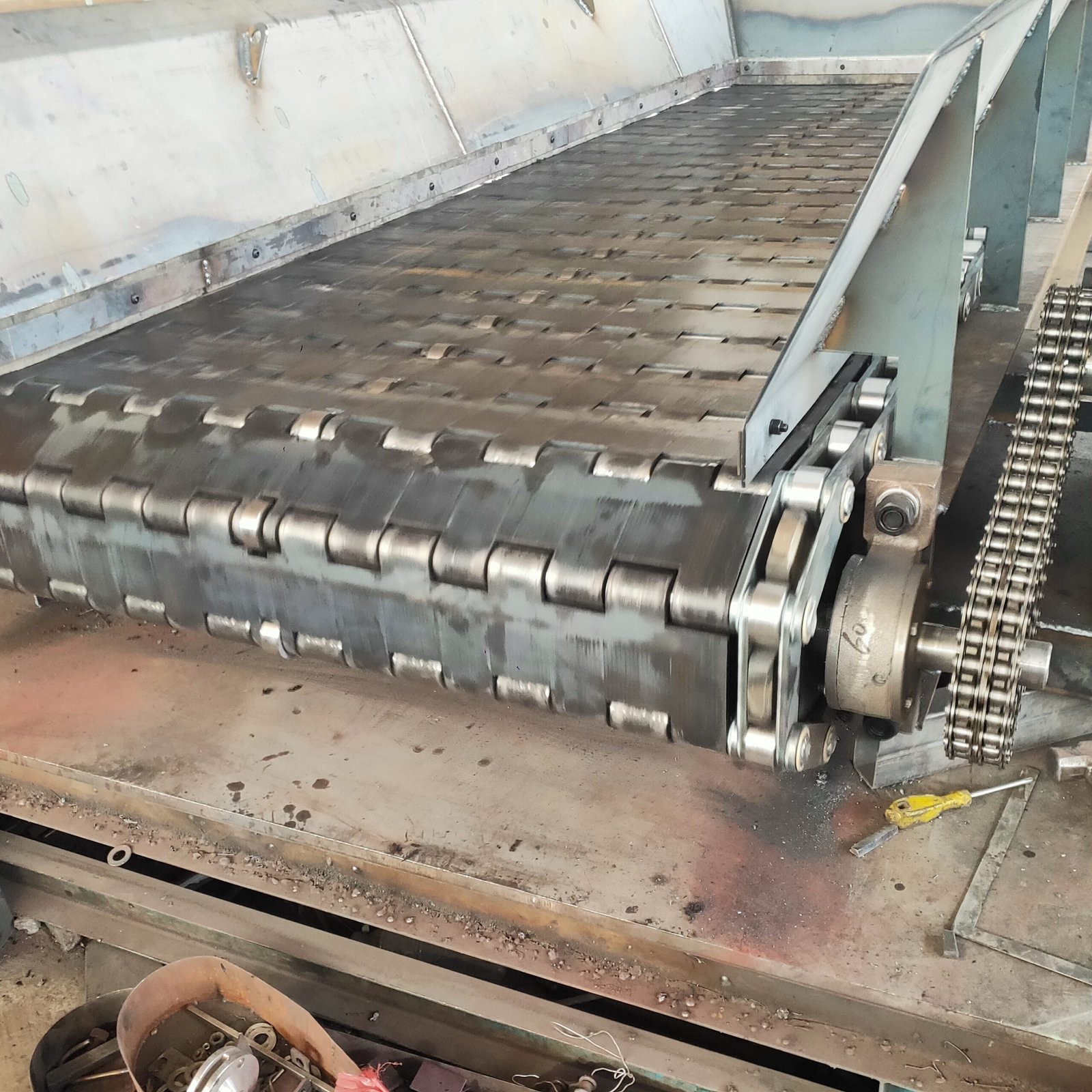 Head and tail wheel, middle section, sprocket, scraper, power device, control device