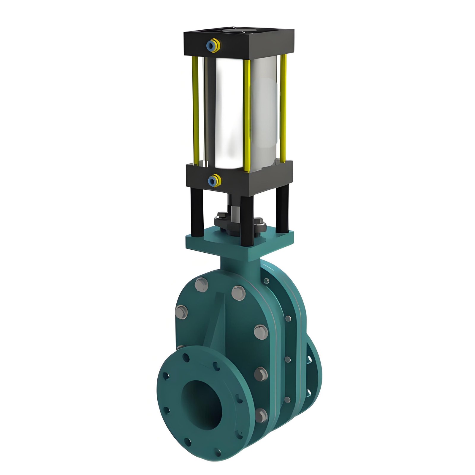 Pneumatic ceramic double gate valve is also known as ceramic parallel double gate valve or ceramic dry ash valve, the opening and closing parts (ceramic gate) are driven by the valve stem for lifting movement, ceramic double gate valve is driven by the cylinder or hand wheel, and the valve stem drives the valve plate to move up and down to realize the valve opening and closing. In the process of opening and closing the valve, the pretension force of the built-in spring between the double gate makes the ceramic gate and the ceramic seat achieve a reliable sealing pressure.